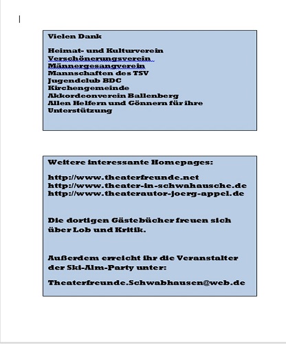 Copyright: Theaterfreunde Schwabhausen Zur Wasserscheide 9 97944 Boxberg-Schwabhausen |