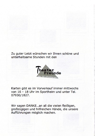 Copyright: Theaterfreunde Schwabhausen Zur Wasserscheide 9 97944 Boxberg-Schwabhausen |